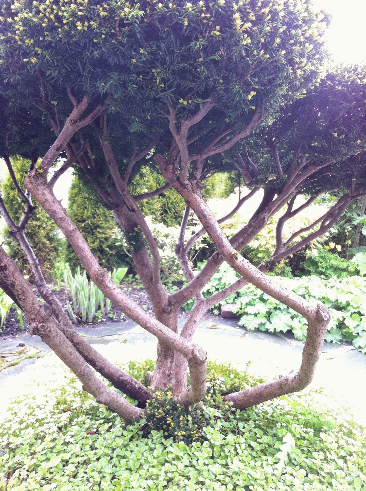 Jeg passer på å foryngelses-beskjære det, ved å sage vekk utvalgte, gamle greiner iblant, slik at nye greinskudd skyter fra bakken. I år blomstrer de unge greinene faktisk for første gang!